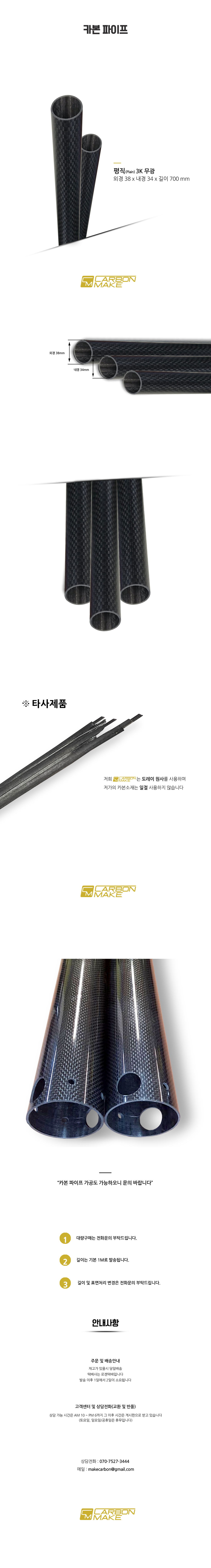 > 카본파이프 외경38X내경34 길이:700(MM) 평직무광